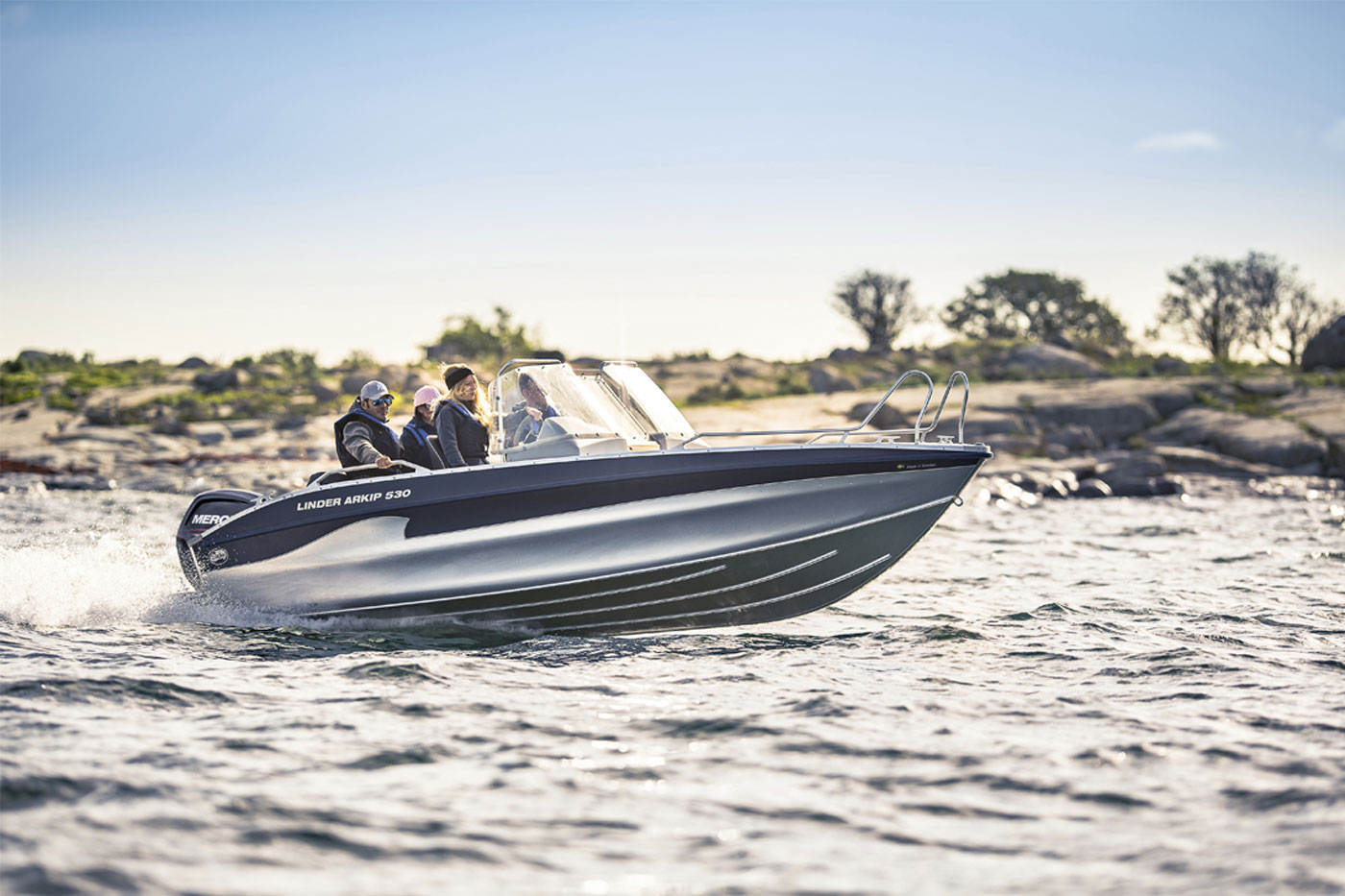 Linder laajentaa valikoimaa. Kirjaimellisesti. Arkip 530 BR on peräti 214 cm leveä. Kun pituuttakin on 530 cm, uimatasoineen 576 cm, saat veneen, jossa on tilaa 6 henkilölle. Veneen, joka sopii hyvin pitemmille merimatkoille.