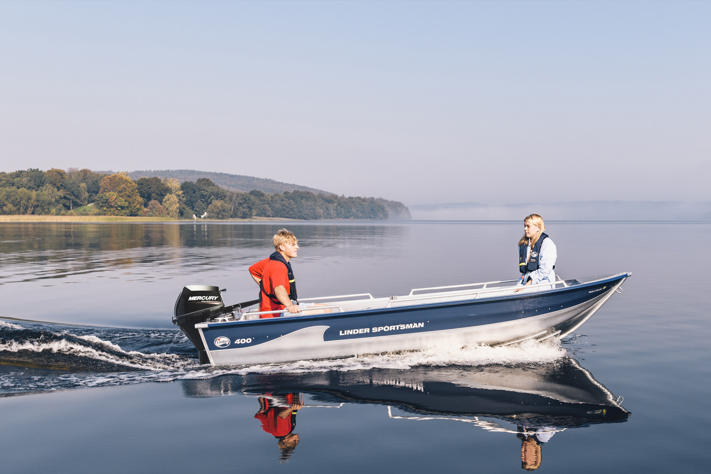 400 Liukuvarunkoinen perhevene järville, saaristoon ja rannikkovesille. Sopii esimerkiksi kalastukseen ja vesihiihtoon (kevyille henkilöille). Helppo kuljettaa trailerilla. Moottorisuositus 20 hevosvoimaan saakka. Säilytystiloja perä- ja keskipenkin alla. Ohjauspulpetti (lisävaruste), jossa paikka akulle. Automaattinen pilssipumppu saatavana lisävarusteena. Ympäristöä huomioiva venevalinta. Valmistettu korroosionkestävästä, korkealaatuisesta, lentokonealumiinia vastaavasta alumiinista. SPORTSMAN 400 toimitetaan varustettuna alumiiniairoilla ja pelastustikkaalla. Det Norske Veritasin hyväksymä. Securmark*-turvamerkitty.