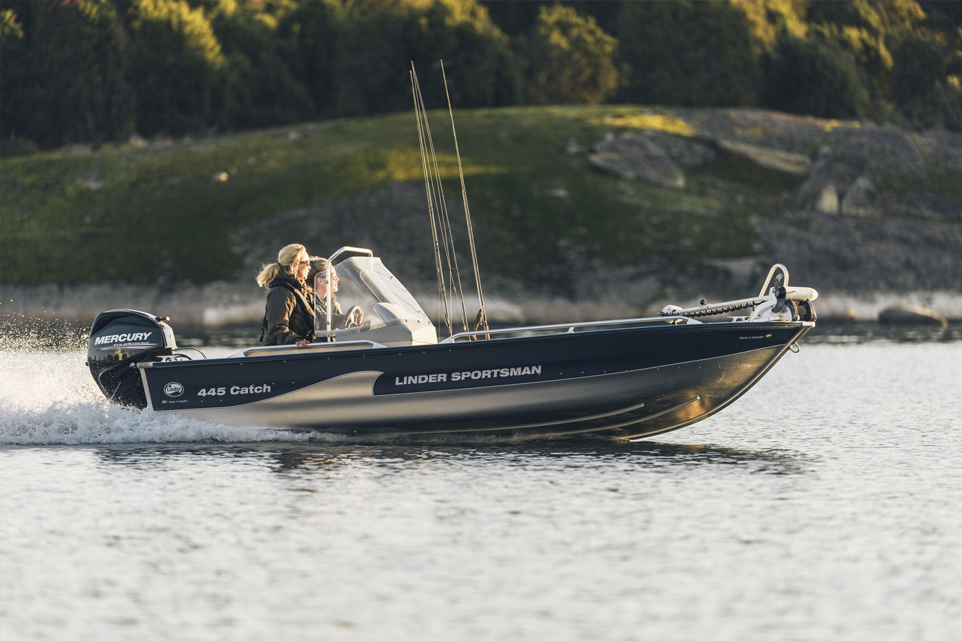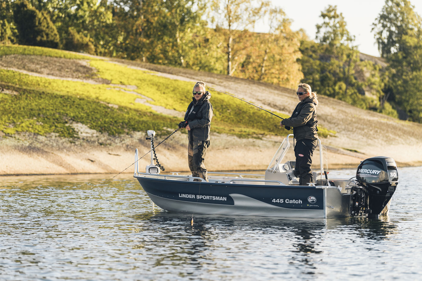 445 Catch on kehitetty yhteistyössä kokeneiden urheilukalastajien kanssa. Veneen keulaan voidaan asentaa myös kauko-ohjattava sähkömoottori. Tämän päivän sähkömoottoreita ohjataan ranteeseen kiinnitetyllä kauko-ohjaimella ja vene kääntyy vaikka kolikon ympäri. Perään on kehitetty oma kiinnike sähkömoottorille. Kokonaisuuden kruunaavat pienet yksityiskohdat, kuten vieheteline sekä kiinteä ”mittatikku” kalojen mittaukseen. Ympäristöä huomioiva venevalinta. Valmistettu korroosionkestävästä, korkealaatuisesta, lentokonealumiinia vastaavasta alumiinista. Det Norske Veritasin hyväksymä. Securmark*-